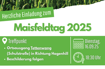 Einladung zum Maisfeldtag am 16.09. in Tettenwang